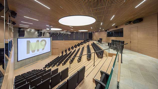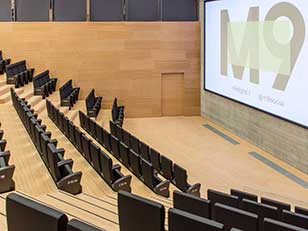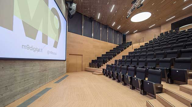 Per l’auditorium dell’M9 sono state scelte nella versione con schienale alto e installate con disposizione in file dritte su gradoni di 51 cm di altezza.