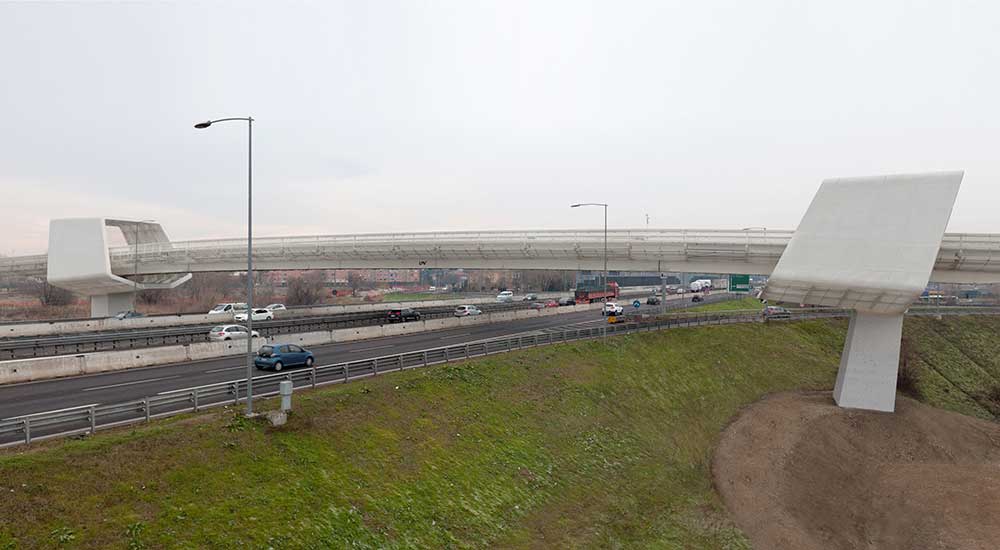 L’opera che all’interno dell’intero progetto ha richiesto più impegno, offrendo anche le maggiori soddisfazioni, è sicuramente il ponte autostradale disegnato da Iosa Ghini.