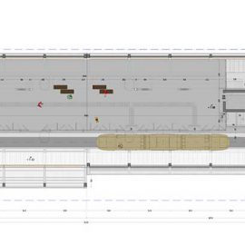 La trave metallica, composta a sua volta da due travi pre-assemblate, è l’elemento più importante del sistema strutturale che caratterizza l’opera perché rappresenta la rotaia stessa su cui corrono, e da cui prendono energia, le navette a guida automatica.