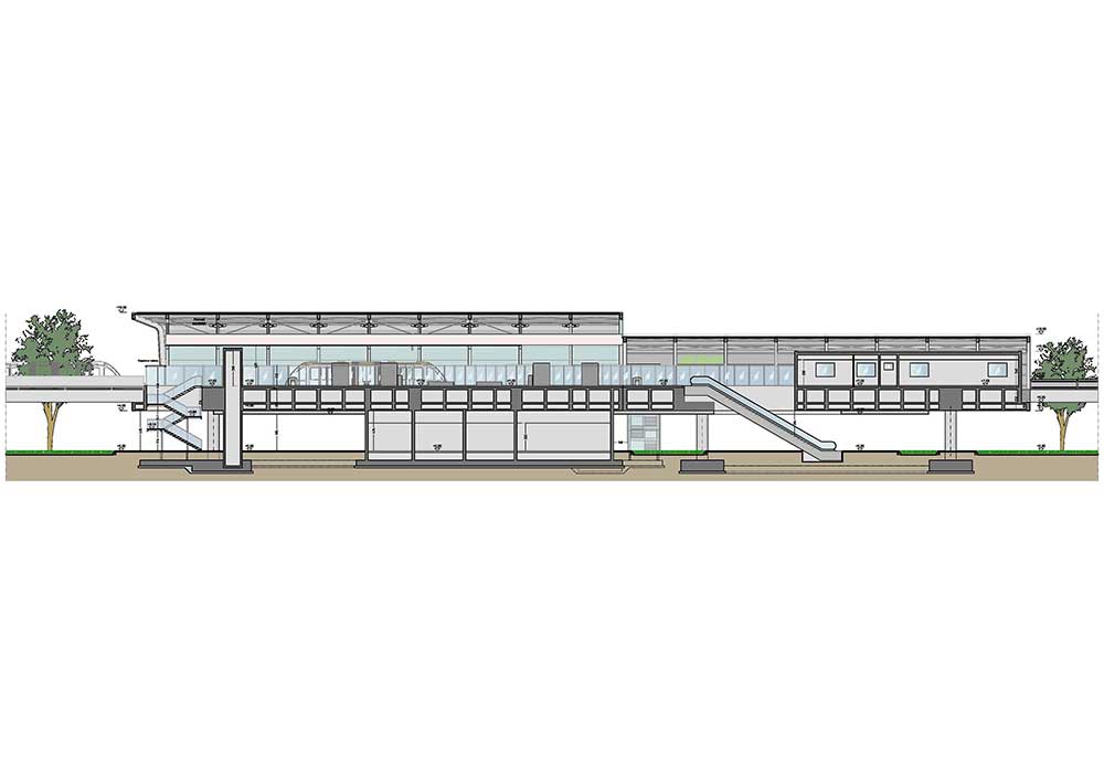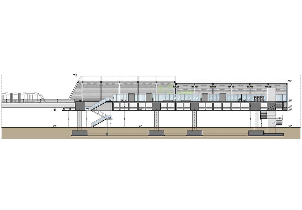 La costruzione interamente in acciaio rende l’infrastruttura particolarmente leggera. Anche le stazioni sono in struttura metallica; il tutto è verniciato di bianco che massimizza il fattore albedo, riducendo al minimo l’assorbimento di calore e il conseguente effetto ‘isola di calore’.