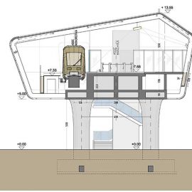 L’orientamento delle strutture e il percorso stesso è una delle linee guida del concetto di progetto ed è stato decisivo per la disposizione dei pannelli fotovoltaici sulla balaustra della passerella e sul tetto della fermata del Lazzaretto. Nel primo caso, il concetto di progettazione deriva dalla necessità di massimizzare le prestazioni dei moduli, mentre per la stazione il tetto è sfalsato in modo che i pannelli possano essere installati sul lato sud-ovest. L’attenzione per l’ambiente e l’uso razionale delle risorse energetiche hanno quindi ispirato elementi architettonici progettati in base al loro orientamento e inclinazione, rendendoli funzionali ma eleganti e ben proporzionati. La superficie della lamiera stirata in acciaio si collega alla struttura, permettendo l’alloggiamento dei sistemi fotovoltaici senza interferire con l’architettura del paesaggio circostante, ma mantenendo la loro funzione di generatori di energia. Dal punto di vista energetico questi pannelli, per il loro posizionamento, garantiscono i requisiti di performance energetica non compromettendo il sistema strutturale dell’involucro delle stazioni e del percorso.