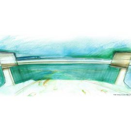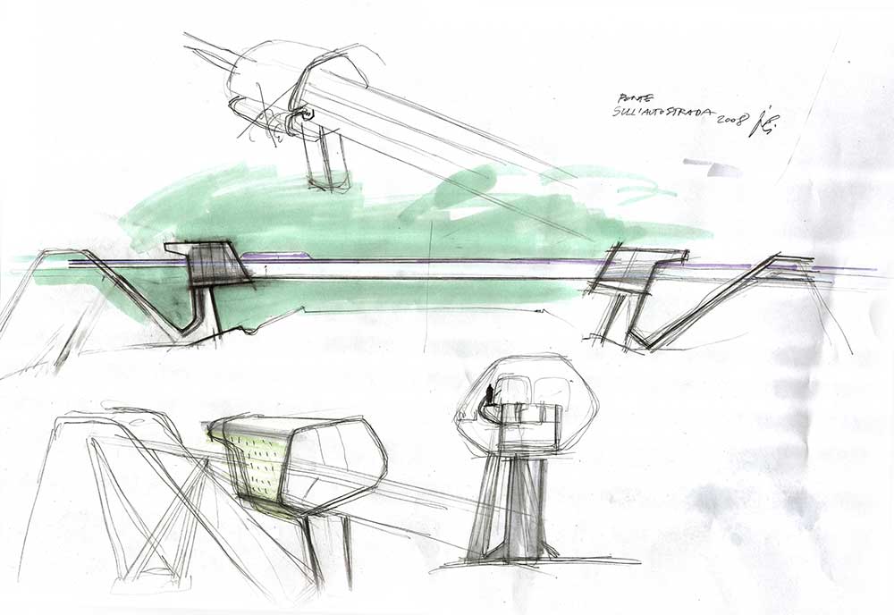 L’opera che all’interno dell’intero progetto ha richiesto più impegno, offrendo anche le maggiori soddisfazioni, è sicuramente il ponte autostradale disegnato da Iosa Ghini.