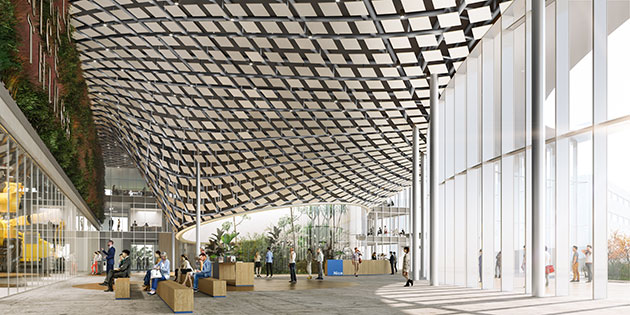 Una serie di percorsi sospesi condurrà alla parte della struttura dedicata ai dipendenti e alle loro famiglie, dotata di palestra, asilo nido e una cucina esterna.