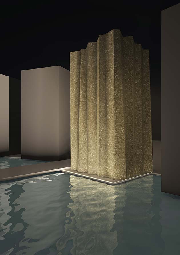 In Architetture per l’acqua, curata da Vincenzo Pavan, le aziende collaboreranno con prestigiosi architetti (Aldo Cibic, Vincenzo Latina, Cino Zucchi, AcMe Studio) per l’elaborazione di progetti che hanno come tema il rivestimento di facciate ed elementi architettonici.