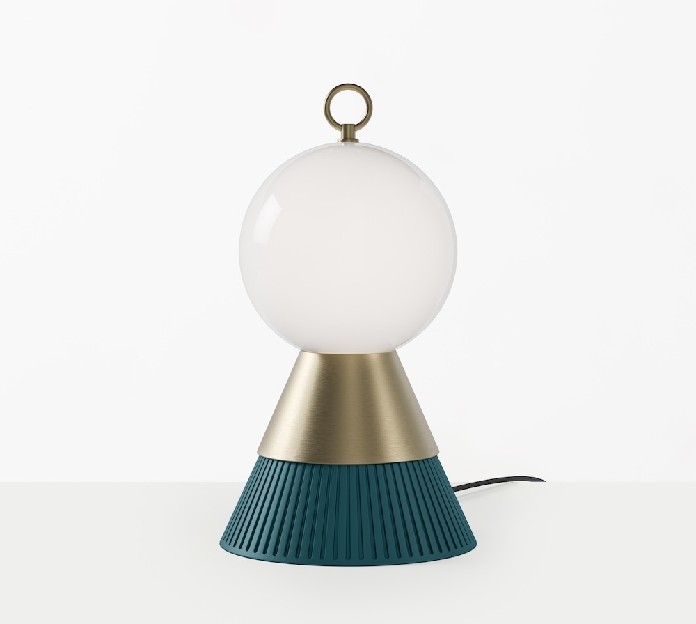La lampada Bōzu di Masiero, nella nuova tonalità ottanio.