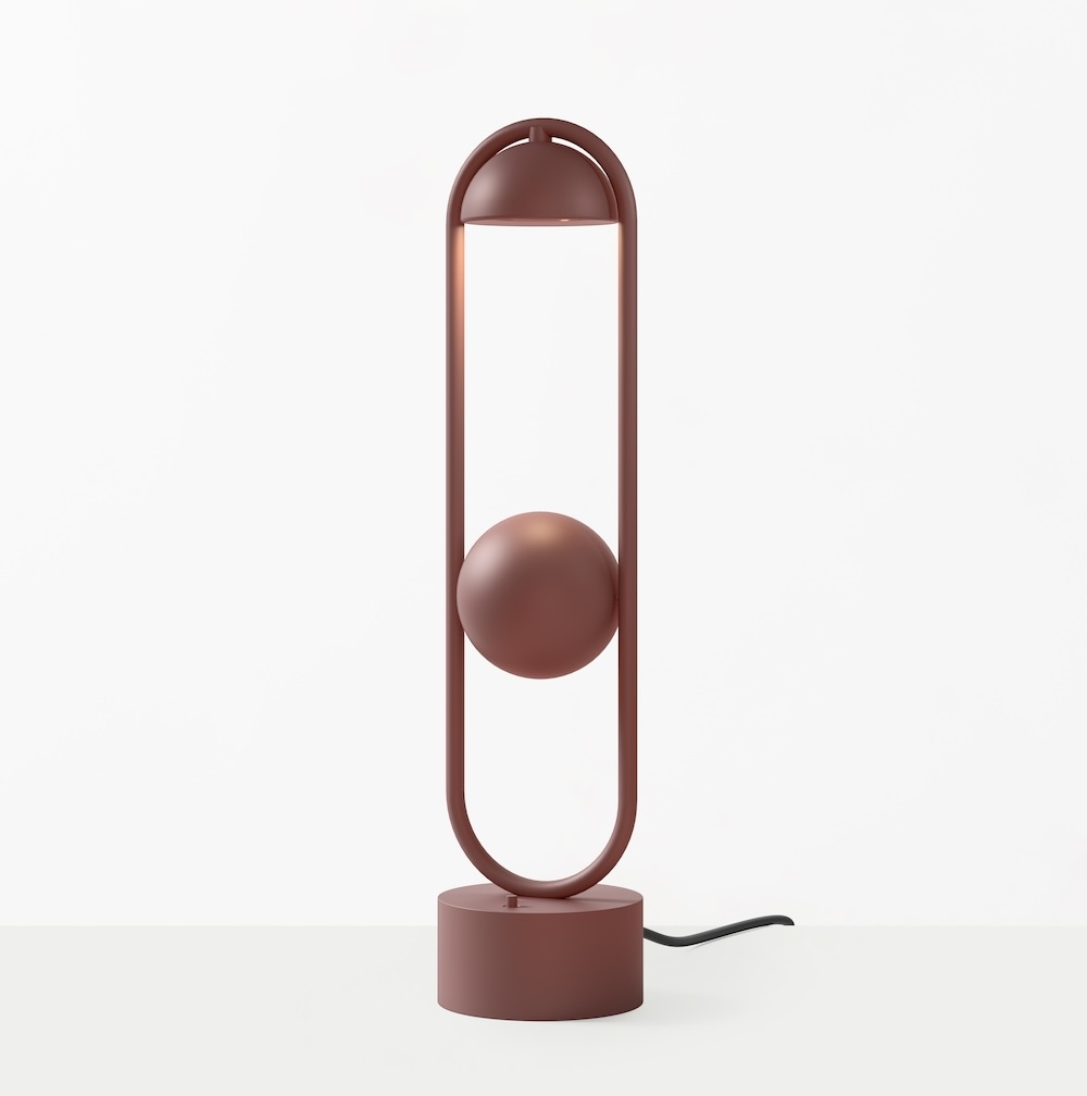 La lampada Luppiter di Marco Zito nella versione da tavolo nella tonalità rosso uva.