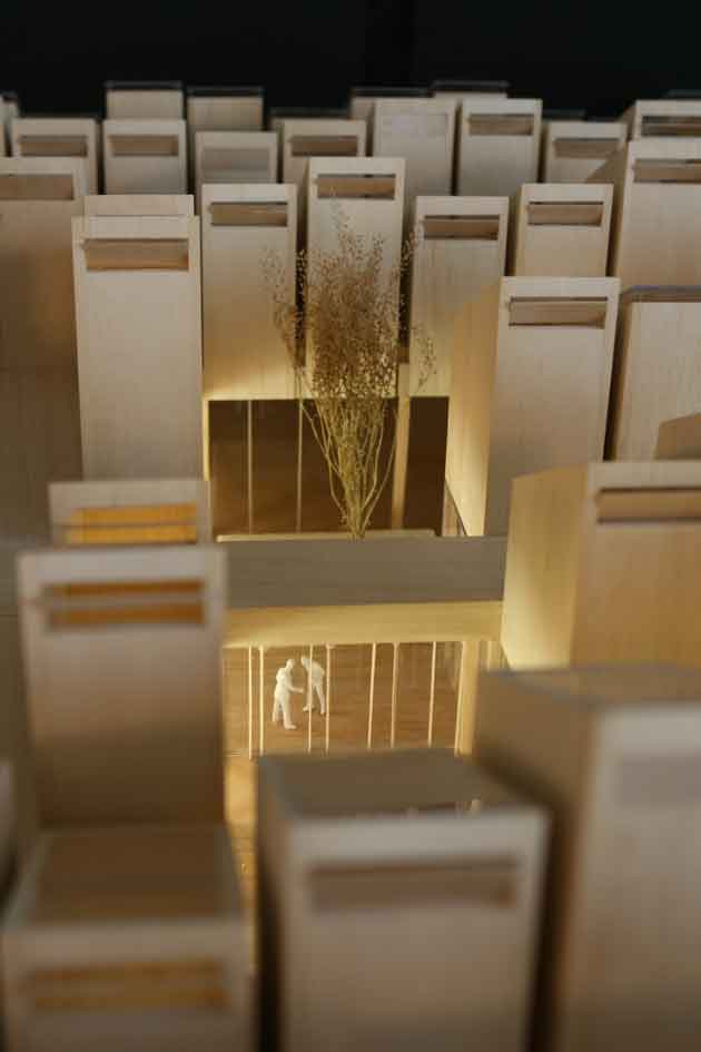 Estetica e funzionalità si fondono in un edificio concepito per agire attivamente con il microclima locale con una copertura che favorisce la ventilazione naturale e caratterizza fortemente l’identità architettonica del complesso. Destinato ad ospitare gli uffici e ai laboratori di ricerca dell’ARPA di Ferrara, l’edificio risponde ai più alti standard di sostenibilità ambientale e qualità architettonica. Il nucleo del complesso è costituito da un cortile centrale e da un’alternanza di microambienti pieni e vuoti, costituiti dagli spazi di lavoro e da ambienti aperti, che movimentano e definiscono i volumi della struttura. L’elemento caratterizzante del progetto è la copertura, dal profilo inclinato e frammentato, formata da una serie di condotti di luce naturale che coniugano la valenza formale con importanti funzioni energetiche: l’ottimale orientamento, altezza e conformazione dei camini, studiato con l’ausilio di software specialistici, favorisce l’estrazione dell’aria calda e l’ombreggiamento delle corti interne in estate, mentre in inverno, captando i raggi solari, le superfici vetrate in sommità diventano serre bioclimatiche per il riscaldamento passivo degli ambienti interni.