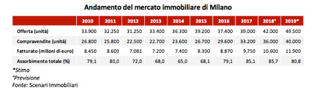Il 2019 in Italia si dovrebbe caratterizzare per un arresto del calo dei prezzi medi delle abitazioni, che rimarranno invariati rispetto al 2018, mentre in Lombardia è prevista una lieve accelerata della crescita delle quotazioni, con un incremento nell’ordine dell’1,5%. E nel 2020 si dovrebbe arrivare a una crescita dei prezzi del 4,2 per cento, assistendo al contempo anche a un primo ricarico dei prezzi a livello nazionale, attorno all’1 per cento rispetto ai valori registrati nel 2018, pur rimanendo ancora stabilmente al di sotto dei valori pre-crisi.