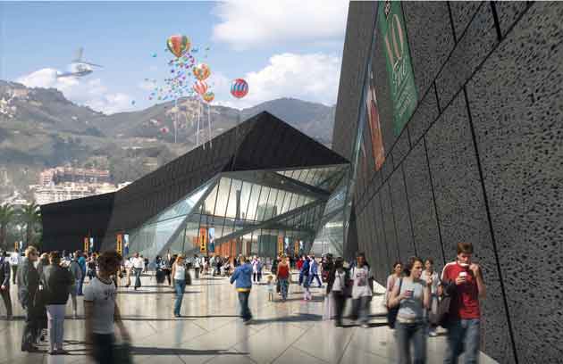 Render del centro polifunzionale previsto nell´area più a nord del piano, tra la Cittadella e la Stazione Marittima (©UFO)