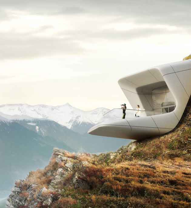 La particolarità del nuovo museo, la cui apertura ufficiale è prevista per l´estate 2014, consiste in una combinazione unica tra la posizione panoramica a 2.275 metri s.l.m. e un impianto architettonico in gran parte interrato con aperture strategiche che offrono una vista a 240° sulle vette circostanti, dalle Alpi della Zillertal alle Dolomiti fino al ghiacciaio della Marmolada. Modellato in base alla morfologia della montagna su cui sorge, l’impianto architettonico prevede uno sviluppo prevalentemente sotterraneo articolato su livelli diversi, tanto che dei 1.000 mq di superficie previsti solo una minima parte richiede costruzioni fuori terra. Grazie a questa soluzione, l’edificio potrà godere durante tutto l’anno di una temperatura interna costante. L’atrio del museo è individuato e protetto da una volta di vetro aggettante che, simile a un frammento cristallizzato, sembra sorgere dalla roccia retrostante. Dal livello superiore dell’area d’ingresso che ospiterà le casse, un piccolo punto vendita e il guardaroba, un sistema di scale a cascata condurrà i visitatori ai tre livelli espositivi sottostanti e una rampa discendente connetterà le diverse quote creando volumi dinamici e comunicanti. Il cuore del museo consiste in un ambiente centrale destinato ad ospitare esposizioni temporanee, presentazioni e una collezione permanente di oggetti, immagini e attrezzi provenienti dall’archivio Messner.