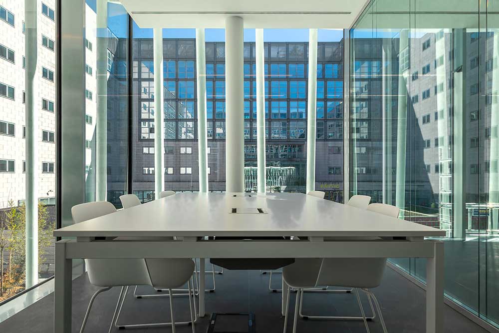Disegnato da Piuarch (i cui soci all’epoca lavoravano proprio in Gregotti Associati), il nuovo volume architettonico si sviluppa su due piani fuori terra, per un totale di 800 metri quadrati, e con una forma libera, quasi circolare, rompe la rigidità dello spazio ortogonale del complesso di Viale Pirelli 10.