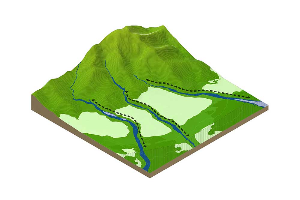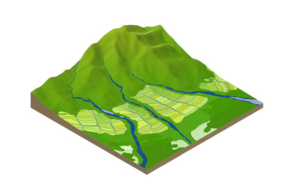Risaie lungo i fiumi che attraversano il territorio da nord a sud agiranno come vasche di espansione per le inondazioni ricorrenti nella stagione dei monsoni, proteggendo edifici e infrastrutture e creando corridoi di biodiversità per la flora e la fauna locale, salvaguardando le rotte migratorie degli animali selvatici.