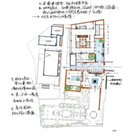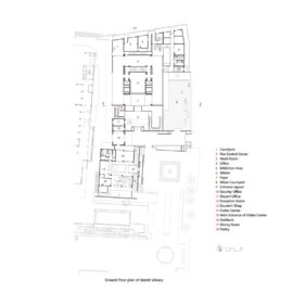 Pochi ma suggestivi gli elementi che collegano il nuovo della biblioteca con ciò che esiste e va preservato, in particolare l’ex-residenza di Cai Yuanpei, con il suo profilo tipico delle tradizionali architetture Shaoxing e Taimen fiorite durante la dinastia Ming e Qing: un pezzo di muro, un albero, alcune pietre, una parete riflettente e uno specchio d’acqua a separare e allo stesso tempo riflettere e riunire il nuovo e l’antico.