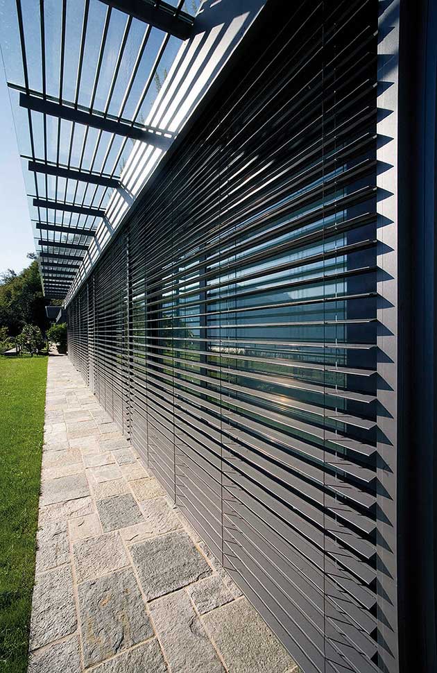 Le lamelle, orientabili sia in posizione verticale che orizzontale, proteggono dall’eccessivo irraggiamento senzasacrificare la vista sull’esterno e riducendo il ricorso agli impianti di climatizzazione.