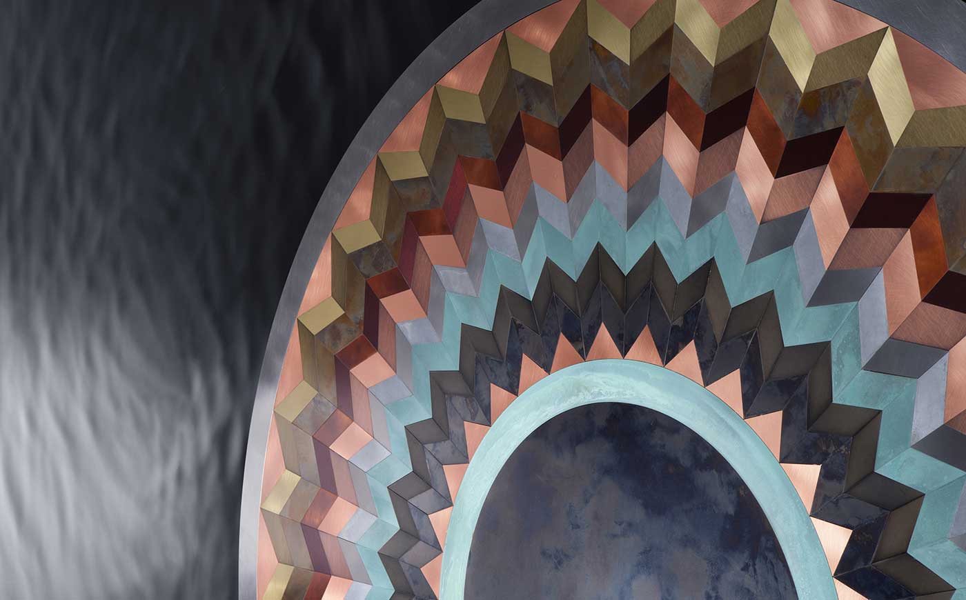 Solo grazie all’indagine approfondita del potenziale narrativo dei metalli, eseguita attraverso innumerevoli prove e verifiche, è stato possibile garantire uniformità e continuità di ossidazioni e toni.