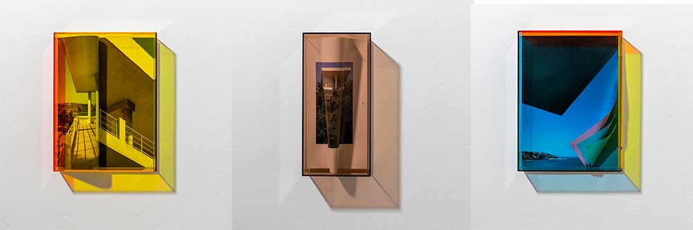 Tre delle sculture in mostra, tutte prese dal libro “Simple architecture: Villa Baizeau in Carthage by Le Corbusier and Jeanneret” pubblicato da Roberto Gargiani. Altuglas plexiglass, dimensioni variabili. © cristian chironi; production LA BOÎTE | Centre d’Art & d’Architecture