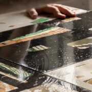 Lopera è stata realizzata con un mix di tecniche artigianali e lavorazioni industriali partendo da un blocco di poliuretano ad alta densità, fresato con un braccio robotico e, successivamente, cesellato a mano.