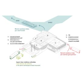L’intervento, condotto in collaborazione con La Superstructure, Patrice Gobert architecte et associés, conferisce qualità architettonica e paesaggistica al complesso industriale favorendone l’inserimento nell’area, una zona di sviluppo misto (la Zac Guilleraies) che introduce molte attività terziarie, e l’accettazione (anche i centri per la raccolta differenziata dei rifiuti soffrono della sindrome Nimby – Not in my Backyard) da parte di residenti e utenti.