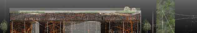Il cardo che porterà al padiglione sarà caratterizzato dalla presenza di numerosi piccoli volumi espositivi temporanei facilmente trasformabili, smontabili e rimontabili.