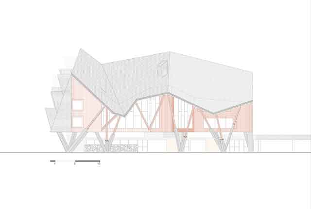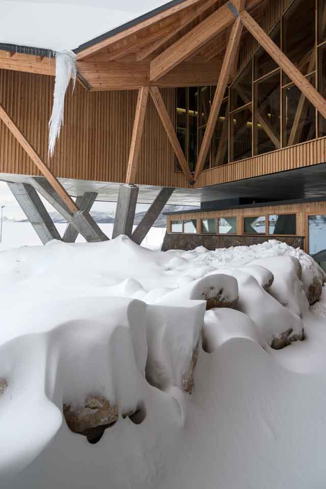 La particolare conformazione della copertura e delle facciate è pensata per interagire in maniera dinamica con la neve e il ghiaccio che si accumulano sulla superficie (foto ©Jacopo e Donato Riccesi)