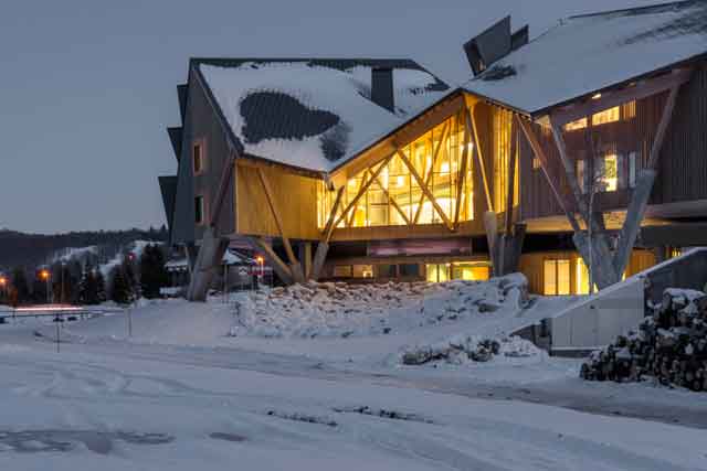 La particolare conformazione della copertura e delle facciate è pensata per interagire in maniera dinamica con la neve e il ghiaccio che si accumulano sulla superficie (foto ©Jacopo e Donato Riccesi)