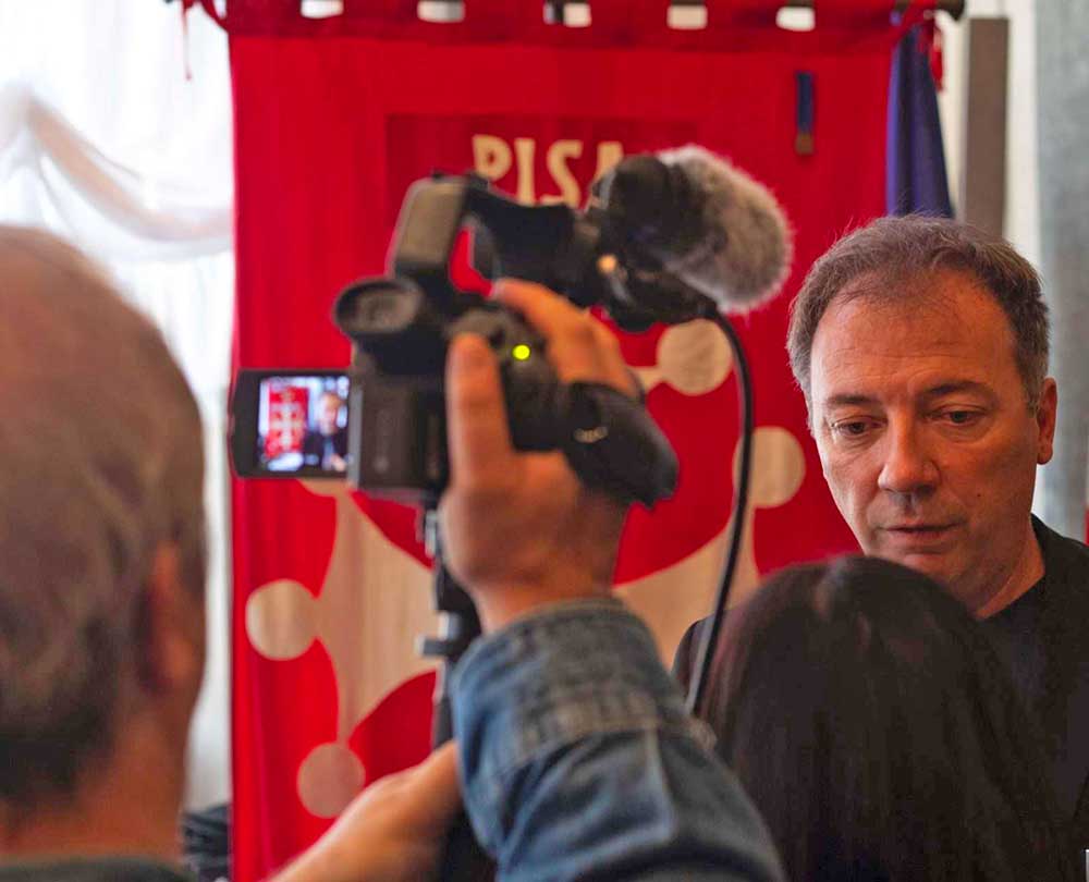Massimo Del Seppia, presidente dell’associazione LP e co-curatore della Biennale di Architettura di Pisa, intervistato alla conferenza stampa di presentazione della sesta edizione che inizia il 10 ottobre (ph. ©Ughi).