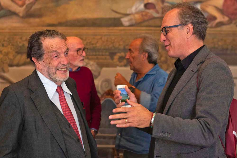 Massimo Pica Ciamarra, Presidente del Comitato Scientifico della Biennale di Pisa, con il co-curatore della Biennale Andrea Iacomoni (ph. ©Ughi).