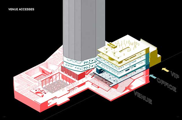 OMA/Rem Koolhaas, assonometria del Ministry of Sound II, London, 2015. Disegno © OMA
