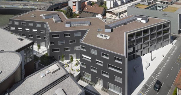 È stata progettata dallo studio Christian Rübbert, vincitore di un concorso internazionale di progettazione, la nuova sede centrale della Banca Popolare Volksbank, primo edificio con certificazione LEED Silver in Alto Adige. Il concorso, indetto dal gruppo bancario per riunire in un unico edificio i vari reparti dislocati in diverse sedi, ha visto la partecipazione di 63 studi di architettura.