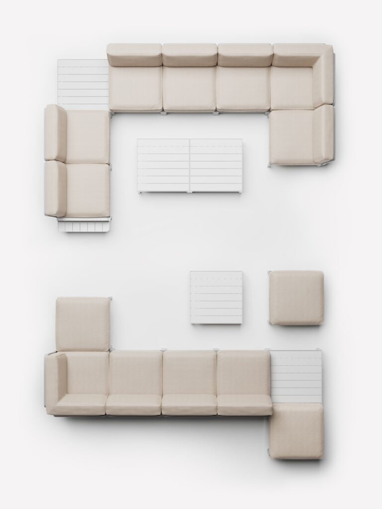 Nardi partecipa al Salone del Mobile presentando nuovi accessori liberamente configurabili per Maximo, divano modulare con struttura in resina rigenerata colorata in massa e tessuti ad alta percentuale riciclata configurabile a piacere.