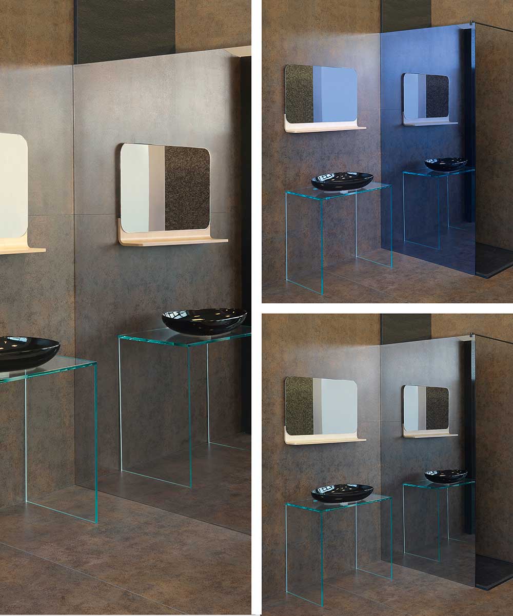 Gli specchi, complemento indispensabile di ambienti bagno e sale benessere sempre più importanti nei progetti residenziali e dell’ospitalità, sono utili anche per ampliare otticamente, con superfici riflettenti, le dimensioni percepite di spazi interni che per le dimensioni ridotte risulterebbero altrimenti opprimenti.