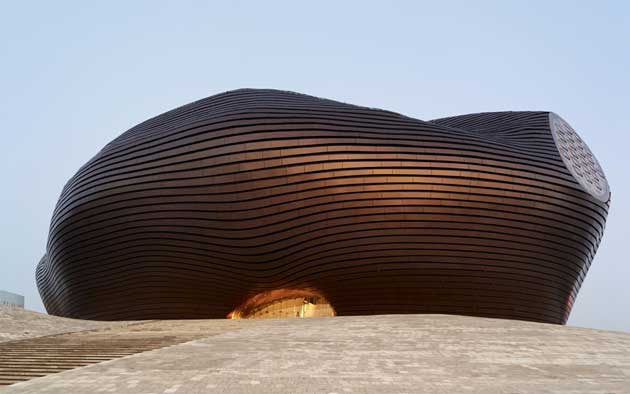 Ordos City and Art Museum, progettato da MAD Architects (Ma Yansong / Dang Qun / Yosuke Hayano), il museo sorge nel centro amministrativo della new town di Kangbashi, nella Mongolia interna, attualmente la ghost town più vasta della Cina data la scarsità della popolazione. Il design organico radicale di MAD si richiama alle dune del deserto che in precedenza ricopriva l’area di sviluppo urbano. Attualmente non frequentato, come del resto la new town, il museo attende ancora di svolgere un compito specifico. |