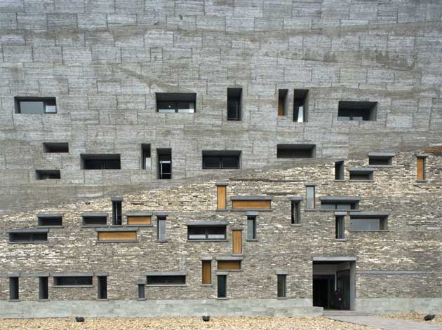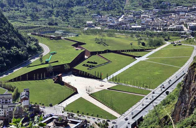 Il National Earthquake Memorial and Museum a Beichuan nella provincia del Sichuan, progettato da Cai Yongjie della Tongji University Shanghai e completato nel 2013, copre le macerie della scuola media di Beichuan, dove molti alunni persero la vita nel terremoto del 2008. Inserito nel paesaggio, museo e memoriale invitano a una riflessione sulla forza della natura. |