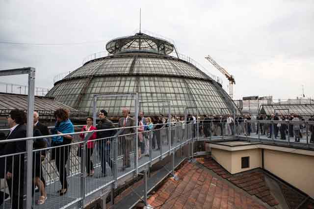 La Galleria Vittorio Emanuele è uno dei simboli di Milano più conosciuti nel mondo. E adesso c’è anche l’opportunità di ammirarla dall’alto come non è mai stato possibile in passato. Si vedrà così Milano da una nuova e affascinante prospettiva, mettendo insieme la grande tradizione architettonica della città e la moderna skyline. Un’occasione straordinaria per i milanesi e per i milioni di visitatori di Expo 2015, ha dichiarato il sindaco Giuliano Pisapia.