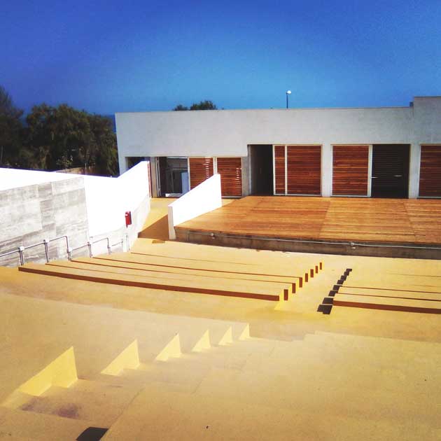 Sfruttando il declivio esistente, il teatro interagisce profondamente con gli elementi naturali che lo circondano: la relazione con il mare e il sistema dei percorsi disegna un’arena che può ospitare fino a 1000 spettatori, palco e retropalco, camerini, cabina di regia, biglietteria e servizi.