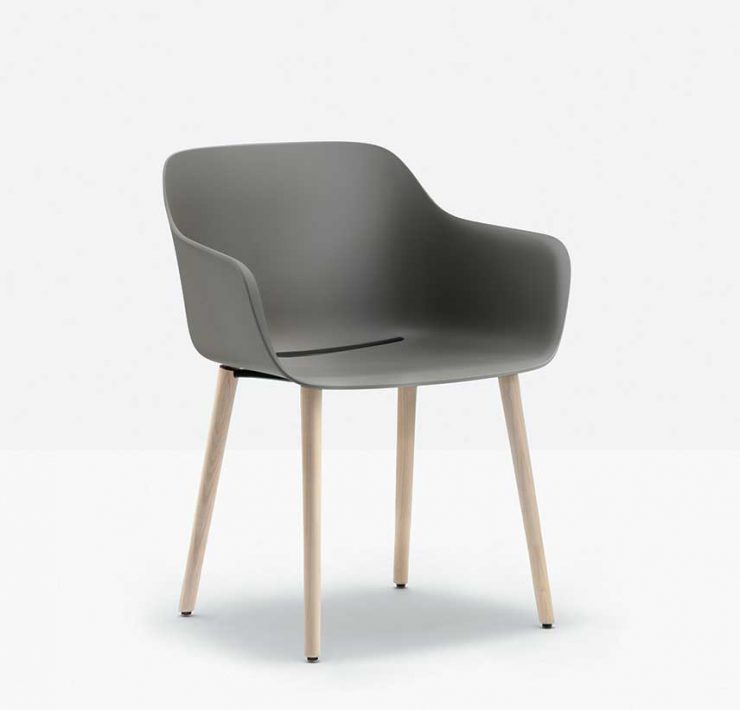 Categoria design per l’abitare. Babila XL Recycled Grey, Pedrali. Design Odo Fioravanti. Babila XL Recycled Grey è una poltroncina con la scocca completamente realizzata in materiale riciclato. Offre un comfort generoso grazie alle dimensioni ampie della seduta e del bracciolo e al rivestimento imbottito che la rende completamente sfoderabile, facilitando pulizia, manutenzione e separazione dal prodotto. Il legno usato per le gambe è certificato FSC e trattato con vernici all’acqua realizzate con materiali rinnovabili, derivanti da processi di raffinazione di sostanze vegetali di scarto che garantiscono una drastica riduzione dei VOC (Volatile Organic Compounds). Le gambe affondano in un telaio in tubo d’acciaio, limitando l’eccessivo uso di legno.