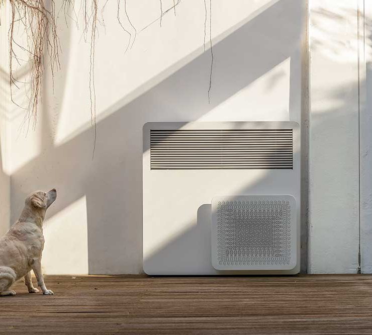 Categoria Design dei materiali e dei sistemi tecnologici. Støne, Innova. Luca Papini Design Studio. Una pompa di calore i cui elementi, realizzati appositamente, si integrano con l’edificio in cui sono installati, minimizzando la propria presenza e inserendosi al meglio in ogni ambiente. Støne può essere posizionata completamente a ridosso del muro dell’abitazione e, nella versione a incasso o semi-incasso, può scomparire completamente nel muro.