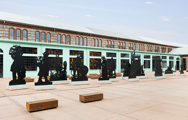 È stato sin da subito evidente che posizionare le opere in uno spazio fisico è estremamente differente dal “posizionarle” all’interno di un programma di renderizzazione. Seppur bellissimo, il lavoro strideva con il sistema di illuminazione originariamente previsto, che andava a indebolire il messaggio stesso della processione immaginata da Kentridge. Si è reso quindi necessario segare i pali che portavano i lampioni originali e reimmaginare, a una settimana dall’opening, il sistema di illuminazione del piazzale d’ingresso delle OGR, operazione portata a termine con la collaborazione del team di lavoro del Castello di Rivoli. Grazie al lavoro di otto professionisti, nel giro di due giorni, l’intera “processione”, issata e sistemata su supporti di cemento e ferro, è stata quindi trattata e dipinta.