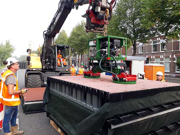 PlasticRoad è dotata infatti di un’intercapedine, da utilizzare temporaneamente in caso di allagamenti delle strade in concomitanza di eventi estremi (lo spazio vuoto può anche ospitare cavi e tubi per evitare le rotture e le successive manutenzioni).