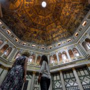 Il tetto originario a volta è diventato – con il progetto di Ellen van Loon di OMA – un volume compatto di vetro. La configurazione del nuovo tetto crea un cortile all’aperto tra il nuovo inserto architettonico e il resto dell’edificio.