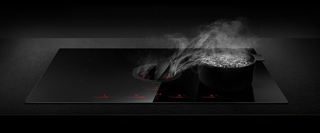 O scompare del tutto, diventando parte inegrante, come nel caso del modello Nikola Tesla One di Elica (design Fabrizio Crisà, foto sotto), parte integrante del piano cottura a induzione.
