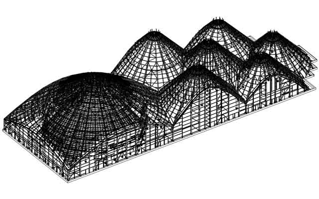 Disegno della struttura in acciaio dell´Expo Center (courtesy StahlBau Pichler Srl)