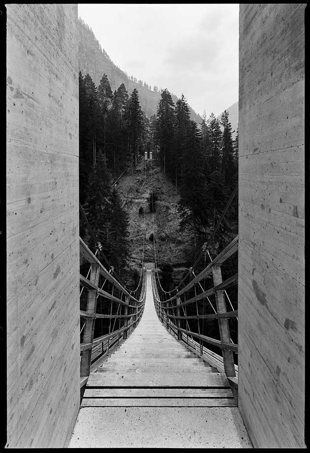 Una sezione della mostra è dedicata inoltre al progetto del “Trutg dil Flem“, un nuovo sentiero escursionisticoche si snoda lungo il torrente Flembach a Flims, per il quale Jürg Conzett ha contribuito a definire il tracciato e ha concepito e realizzato una serie di ponti pedonali.