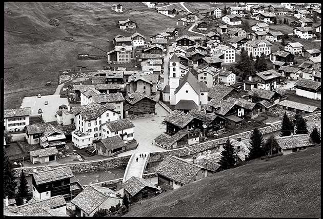 La pratica di ricorrere a materiali locali e a tecniche costruttive tradizionali è presente anche nel ”Dorfbrücke” di Vals, una vera e propria estensione della piazza del paese, realizzato in lastre di Gneiss del Vallese e cemento armato, progettato da Jürg Conzett con la consulenza di Peter Zumthor. Il Dorfbrücke introduce uno degli argomenti centrali della mostra, e cioè come l’opera ingegneristica possa trarre ispirazione nel costante confronto con la propria tradizione disciplinare, progettuale e costruttiva, in relazione con il paesaggio che la ospita.