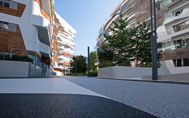 IPM GeoDrena® è eco-friendly, drenante, traspirante e grazie alla varietà e combinazione di colori e tagli delle graniglie naturali di pregio (marmo, quarzo, porfido, serpentino o granito) si integra in modo eccellente in qualsiasi spazio urbano, esaltandone valore, estetica e fruibilità.