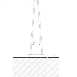 La passerella è concepita come una struttura sospesa con un pilone in acciaio e due campate di 30 e 100 metri. Le cerniere sono costituite da 17 coppie di funi d’acciaio e il ponte è collegato con due cavi liberi.
