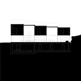 Tutte le stanze sono composte come una scultura di cubi di legno, tra i quali lo spazio aperto può dispiegarsi orizzontalmente e verticalmente, portando la luce in profondità nella casa, anche in inverno, e disegnando viste sul giardino, sugli alberi e sul lago da qualsiasi punto di osservazione.