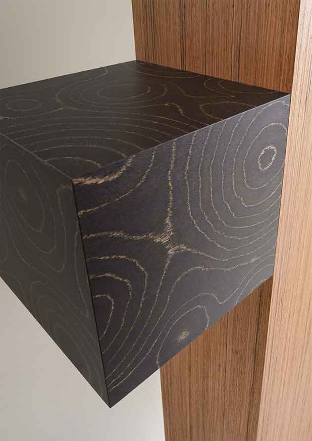 La collezione di oggetti pensati da Lissoni è interamente rivestita di legno Alpi: Xeno, Palladio, Idrogeno, Cripto e Zirconio sono piccole architetture. Cinque volumi di dimensioni e forme diverse che sembrano essere ordinate secondo una formula compositiva di moduli-elementi chimici.