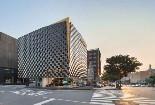 Lo studio di progettazione Piuarch firma il nuovo flagship store Givenchy a Seoul, edificio su quattro piani che si propone come nuovo landmark urbano grazie alla facciata bugnata in acciaio dalla superficie cangiante ispirata alla lavorazione dei tessuti sartoriali.