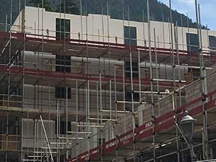Sempre a Courmayeur Wood Beton sta costruendo l’Hotel des Alpes, di otto piani con pareti intelaiate rivestite con legno di larice: una struttura progettata dallo studio dell’architetto Domenico Mazza secondo i criteri della bioedilizia.